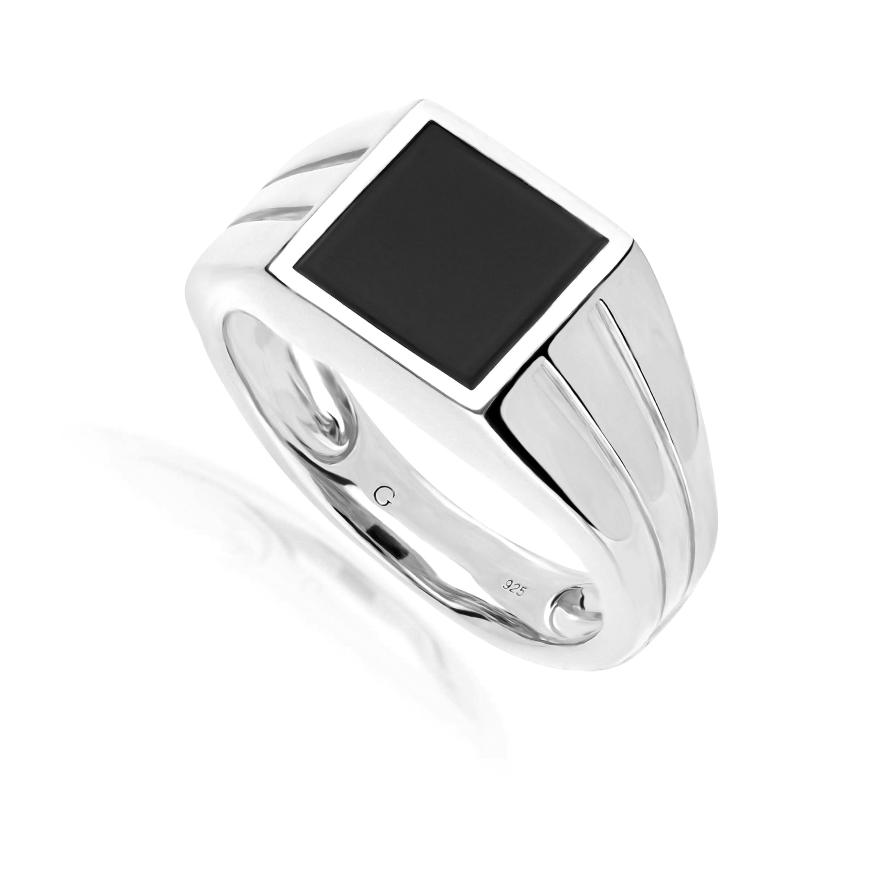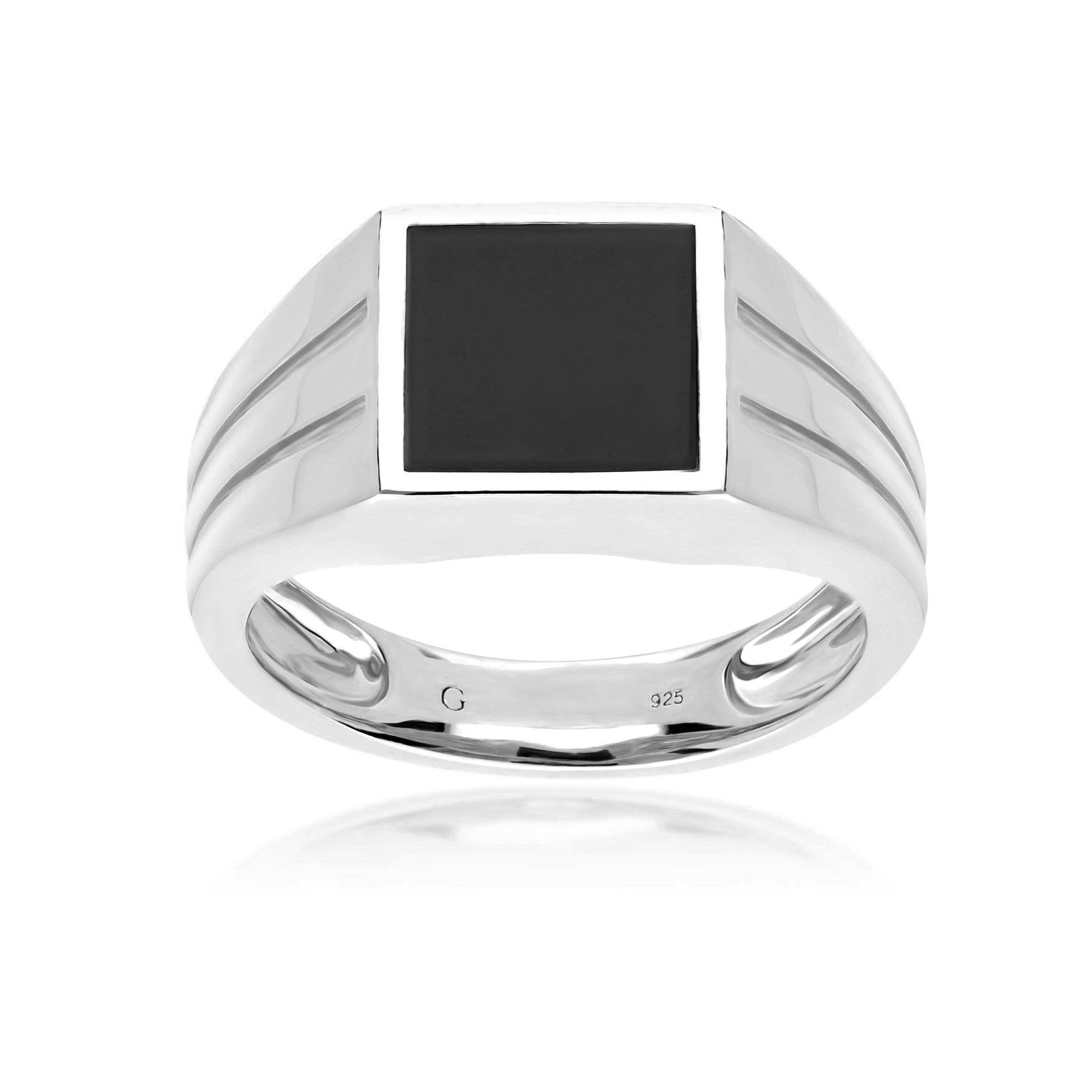 Complete your look with Gemondo signet ring. Modern design 8x8 mm black onyx ring in rhodium plated 925 sterling silver.